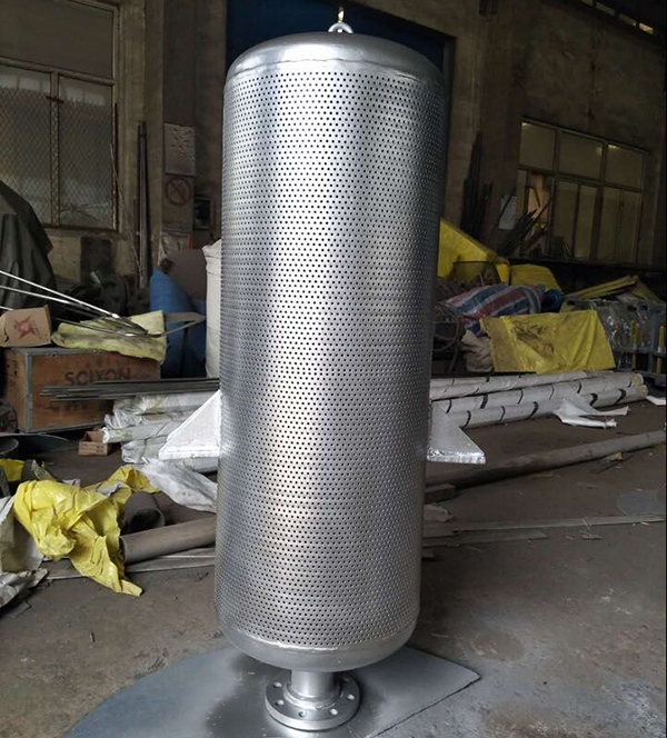 小孔消声器属于多孔扩散消声器,即汽量通过多孔扩散后,速度及驻点压力都会降低的原理设计制作,气体通过多孔扩散后,压力降低,流速之被扩散减小,相应地减弱辐射噪声的强度。多孔直径越小,排汽噪声效果越好。
