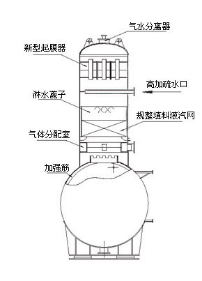 旋膜式除氧器的结构型式主要由筒体外壳、汽水分离器、新型旋射起膜器、淋水篦子、规整波纹液汽网、水箱组成。
